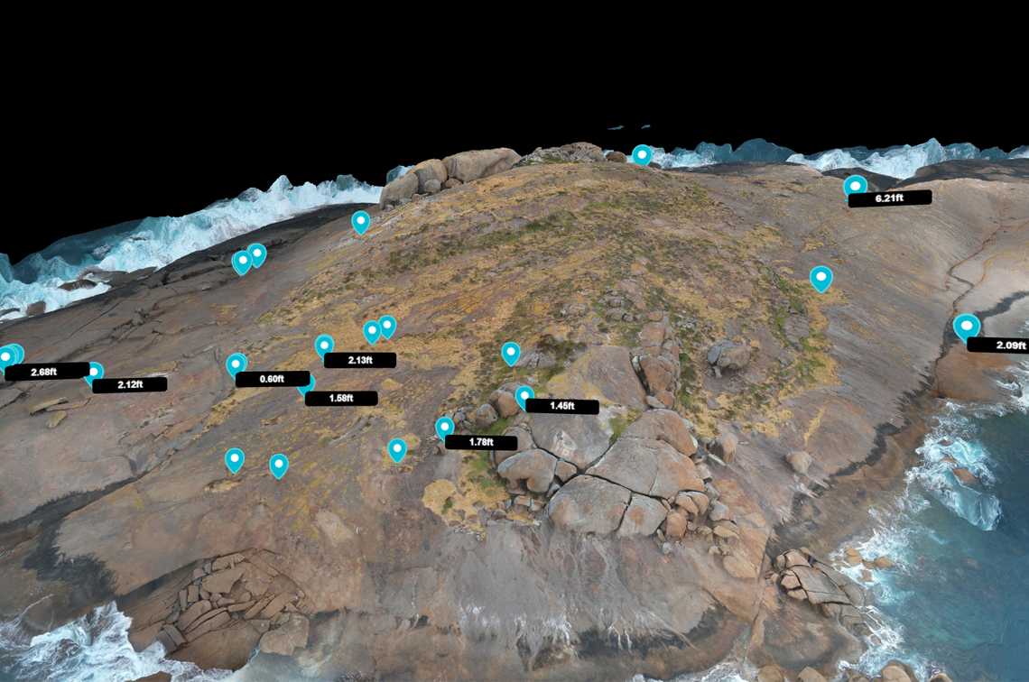 About 35% of Western Australia’s sea lion breeding colonies reside at the Recherche Archipelago. Many of the islands here are difficult to access due to the swell and steep granite, so the survey team travels by helicopter. From the air, they take photos and record data of the breeding colonies. Once on site, they conduct ground counts and collect drone imagery if the weather allows.